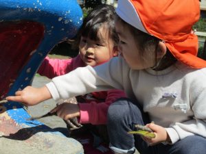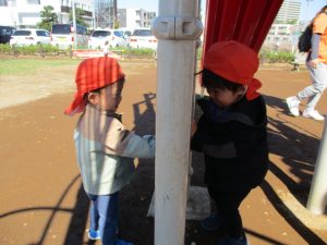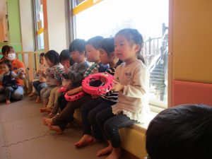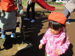 他の保育園のお友達もたくさん来ており、じーっとその様子を見つめ一緒に遊びたそうな雰囲気も滲み出ておりました。