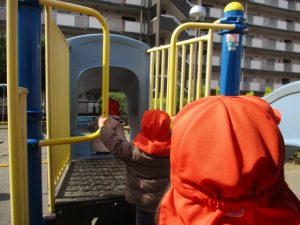 保育園に戻る際にいつもと少しルートを変えると新しい公園を発見!