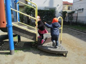 ご家庭でもよく遊びに行かれてるようで遊具の遊び方が非常に上手ですね。