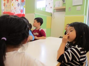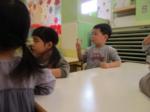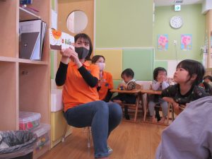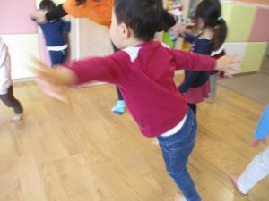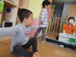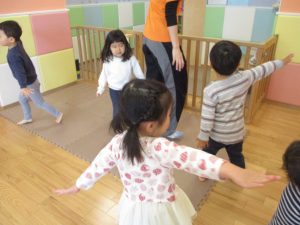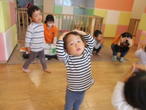 慣れ親しんだ曲に合わせて体を動かしたり、英語のフレーズを口ずさんだりして楽しく過ごしました!