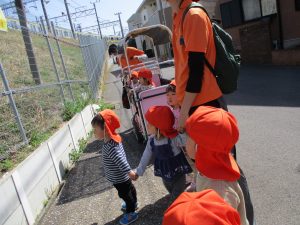 0.1歳児のお友達は園前の中学校経由で津田沼駅周辺まで電車を見に行きました!