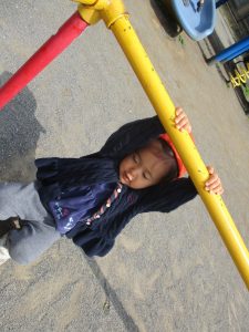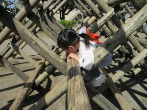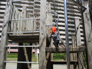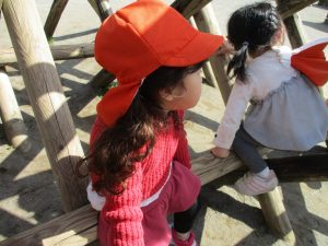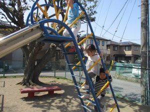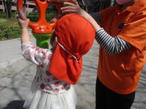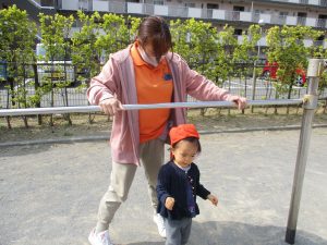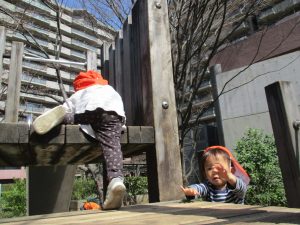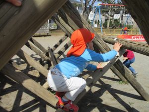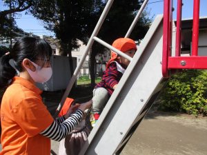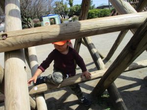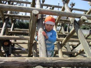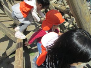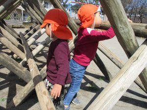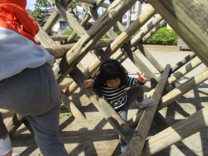 2歳児さんは宮本台公園まで足を運び、固定遊具で思い切り体を動かしました!