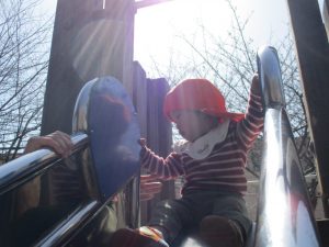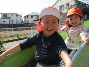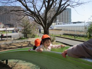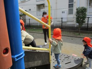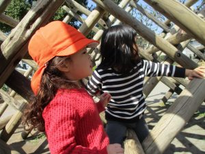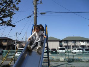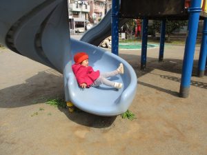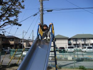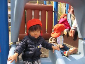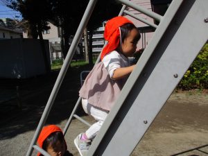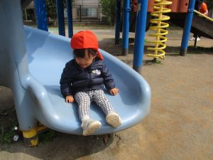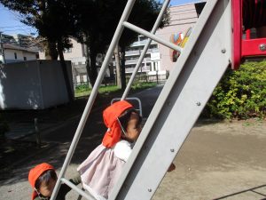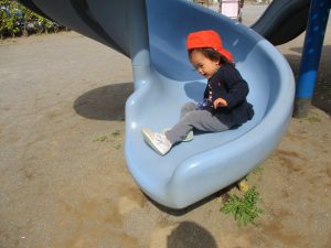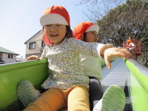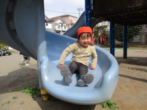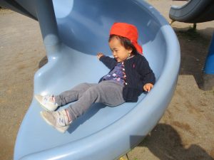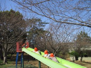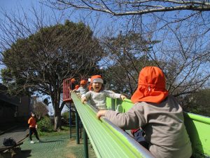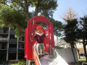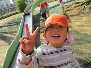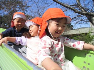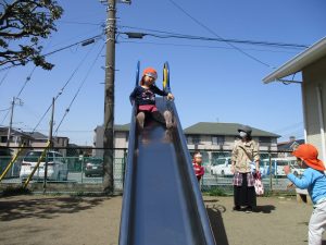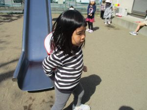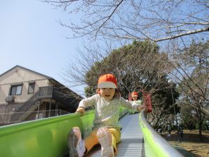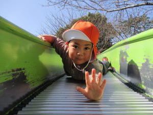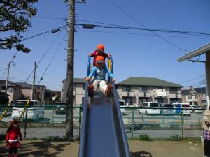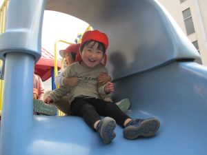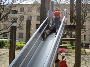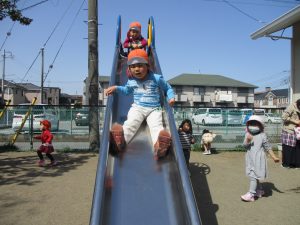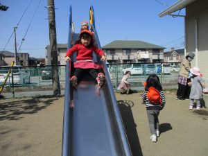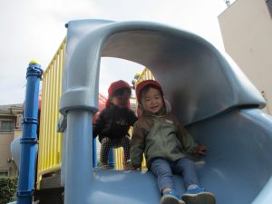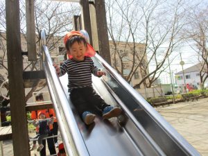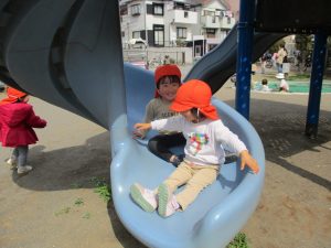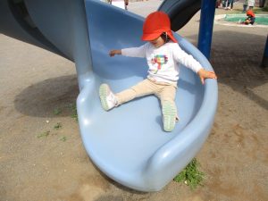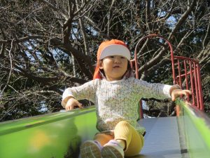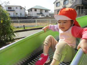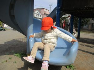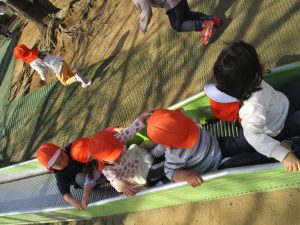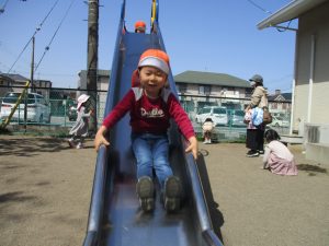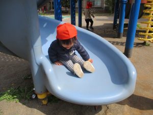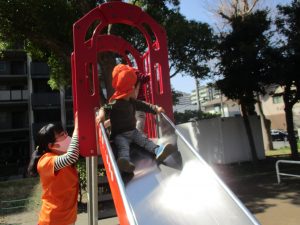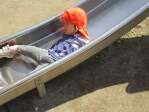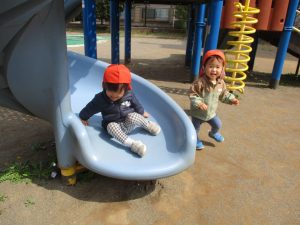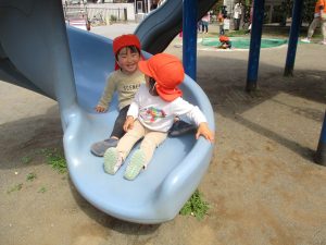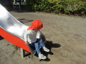 滑り台を仲良く滑り、たくさん体を動かしました。