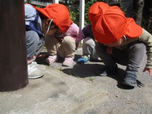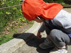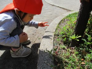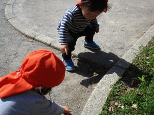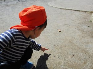 散歩の途中や公園内でアリさんを良く見つけ「アリさんだぁ!」と声を大にして喜んでいました。