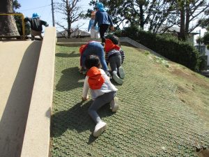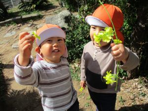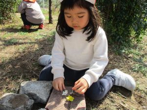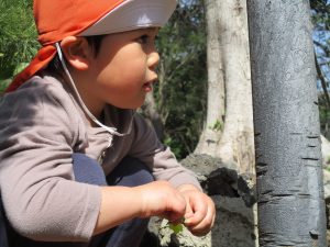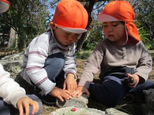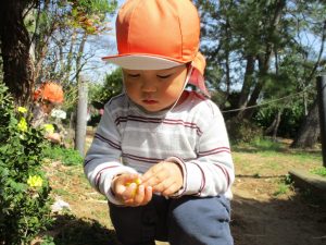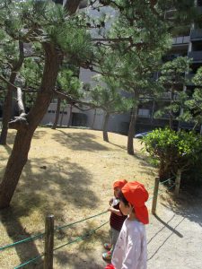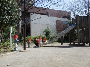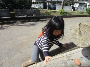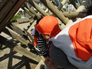 大好きなローラー滑り台で遊んだり、奥にある林の方まで足を運び自然物探しを楽しみました。