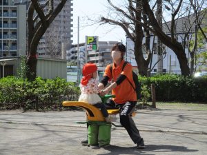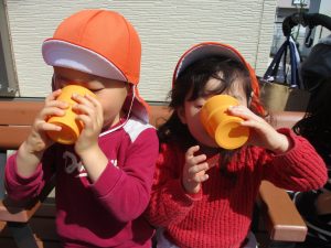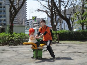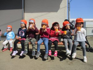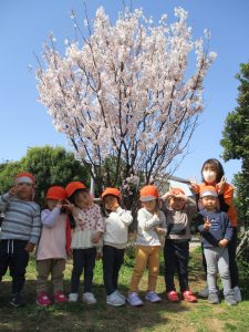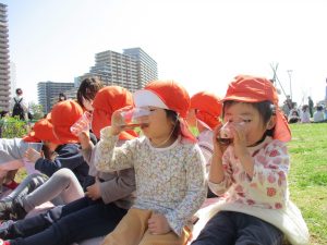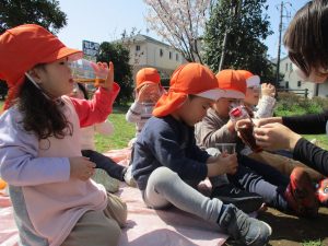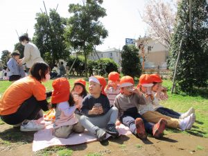 その後は防災公園に寄り桜の木の下で麦茶を飲み、ピクニック気分を存分に楽しんだり皆で記念撮影を行いました♪