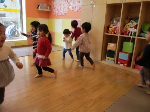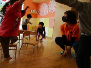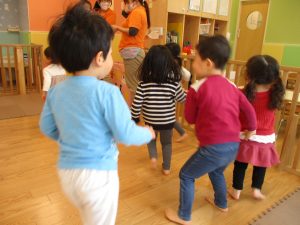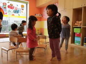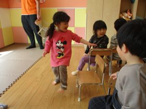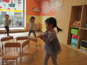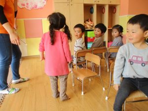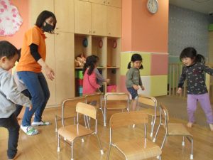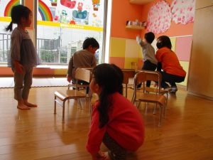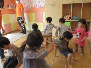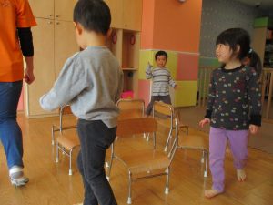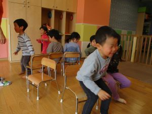 何度か行うと子ども達もルールを理解できたようで、流れる音楽に必死に耳を傾けております。