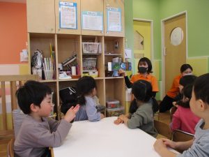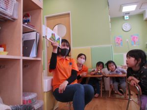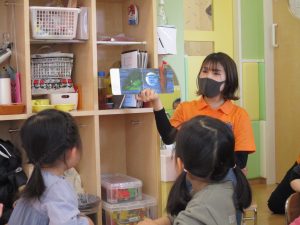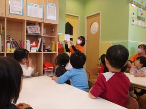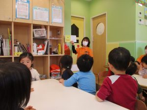 色や乗り物に関する英語の絵本の読み聞かせも楽しみました。