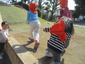 0.1歳児のお友達で追いかけっこをする姿もあり、異年齢間の交流も楽しんでいました♪