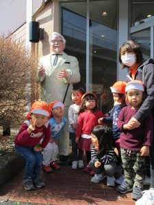 子ども達の要望に応えフライドチキンのお店の前で記念撮影も行いました。笑