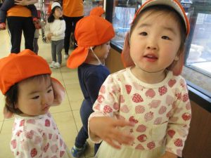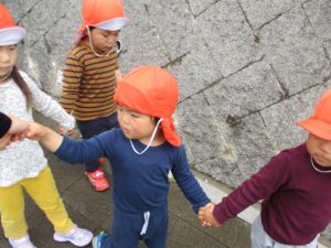 1歳児さんと2歳児さんで手を繋いで歩きましたが張り切って歩くお子様達の姿こそ今年の谷津園を象徴していますね。