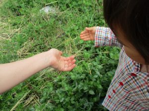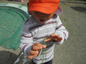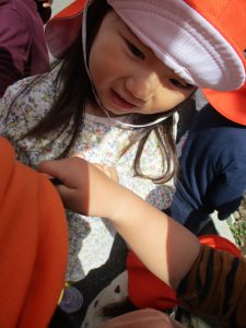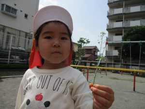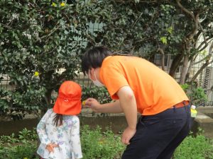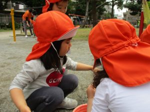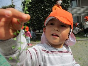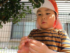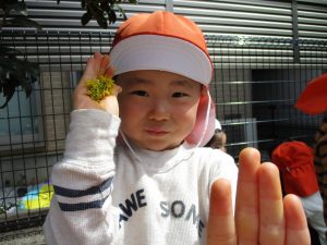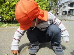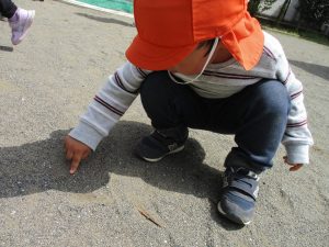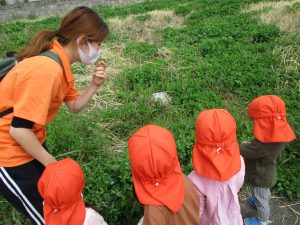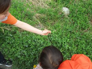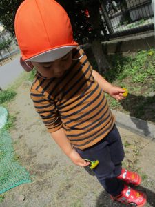 保育園に戻る際に園周辺の広場にて虫探しも楽しみ、季節感満載の時間を過ごしました♪