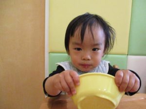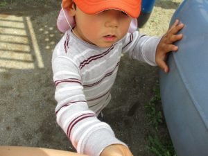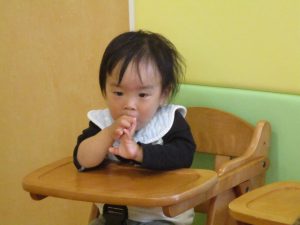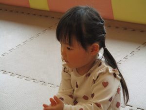 手が汚れるのを嫌がる1歳児のお友達の仕草が何とも可愛いですね♪
