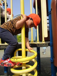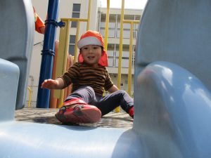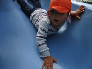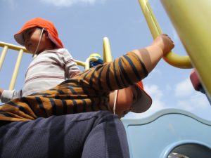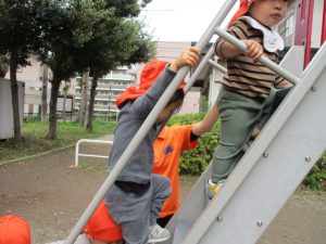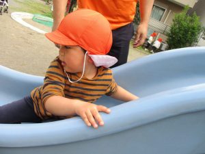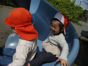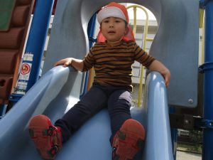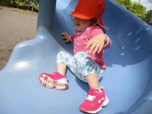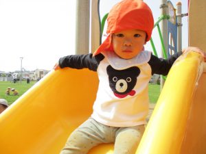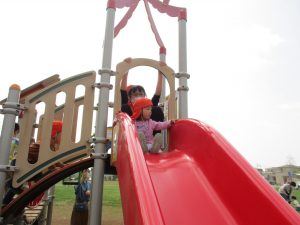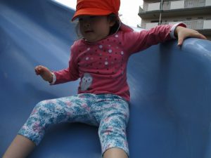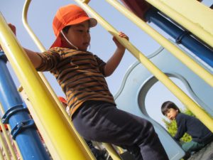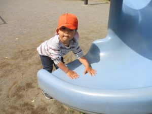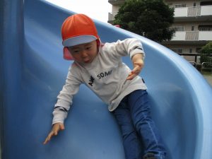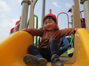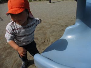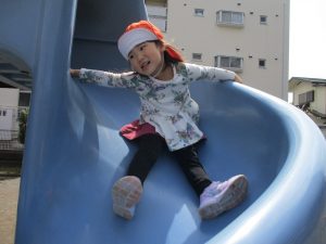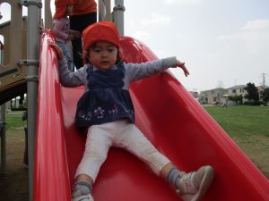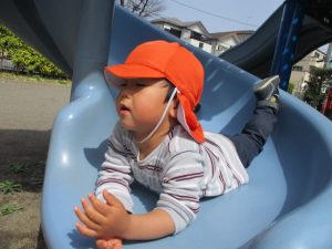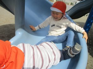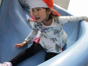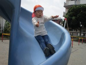 公園内をノビノビと走り、滑り台でもたくさん体を動かして遊びました。