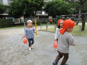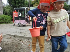 2歳児さん最後の戸外遊びの場所は5丁目公園です!