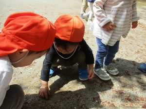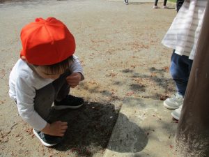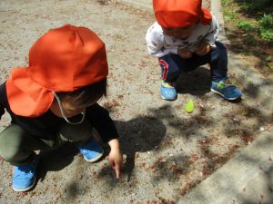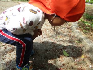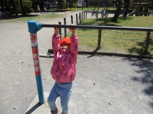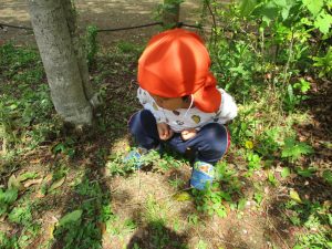 自然物を探したり固定遊具を使って思い切り体を動かして遊びました。