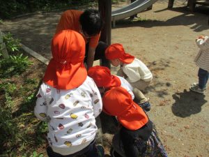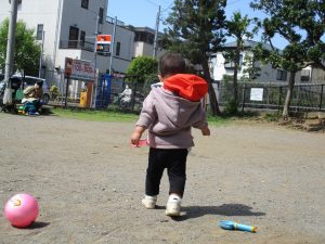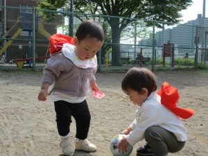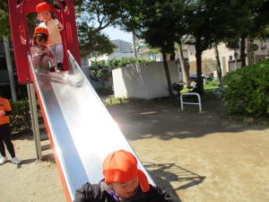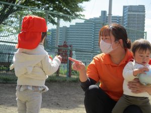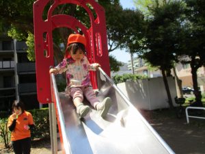 1歳児クラスは園裏の6丁目公園にて遊びました♪