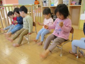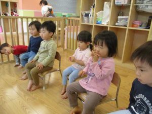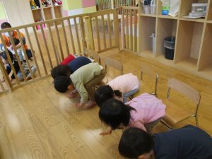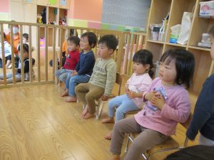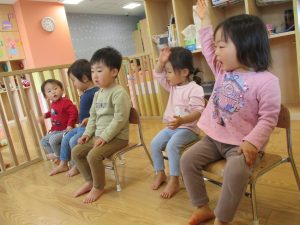 金曜日の育脳カリキュラムはリトミックになりますが、本日は少しスタイルを変えて椅子バージョンを行いました。