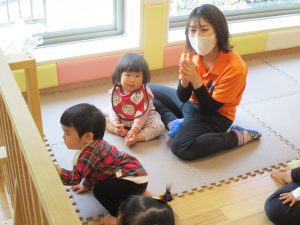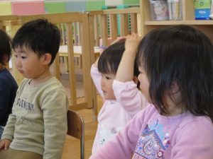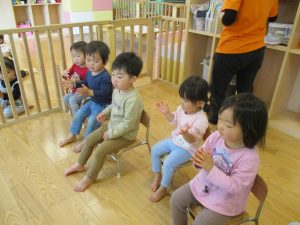 子ども達のリクエストに応えたり、季節の歌を行い音楽に合わせて体を動かして楽しく過ごしました♪
