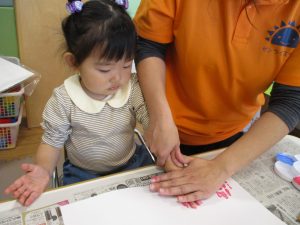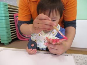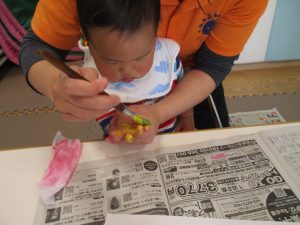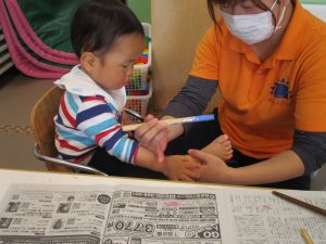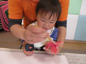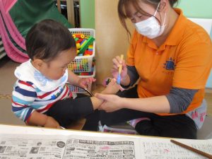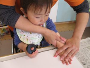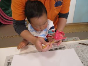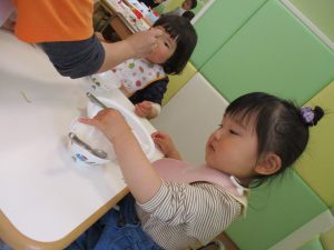 初めての感触?に少し不思議がる表情もございましたが、入園1週間で製作を楽しめる雰囲気が素晴らしいですよね♪