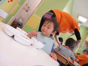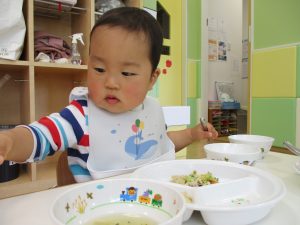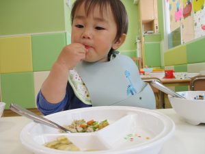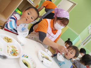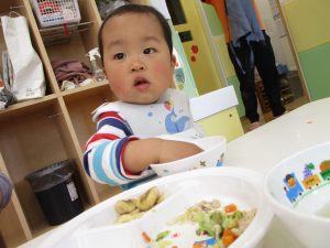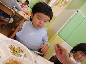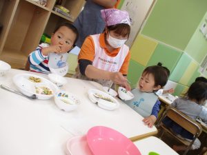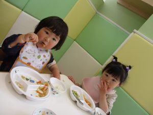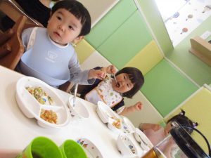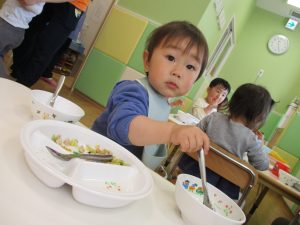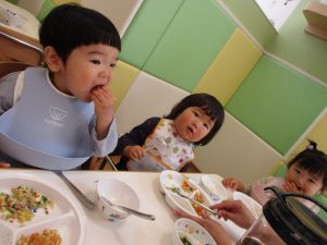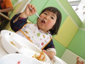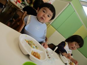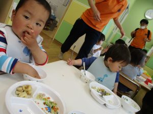 給食デビューも行いましたが、皆おいしそうに食べてくれてます。