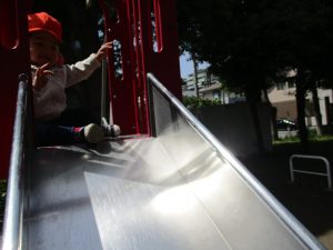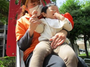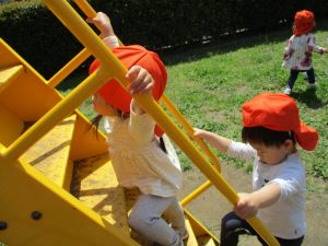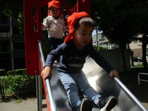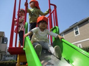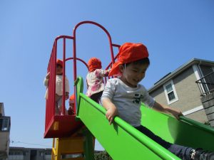 滑り台で楽しく体を動かしたり、ままごと遊びを楽しみました。