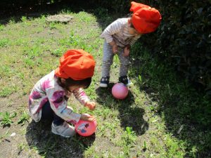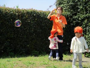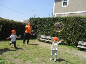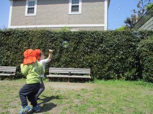 公園では滑り台を使ったり、カラフルボールやシャボン玉を使って思い切り体を動かしました♪