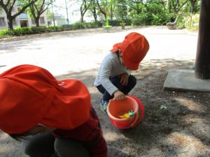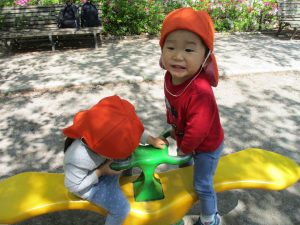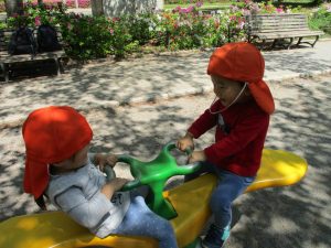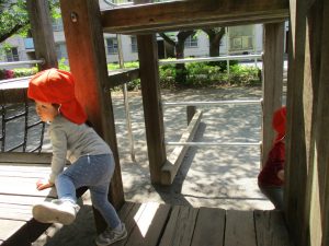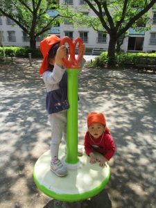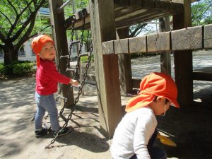 固定遊具で遊んだり虫探しに夢中で、春を存分に味わっております。
