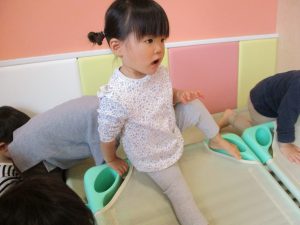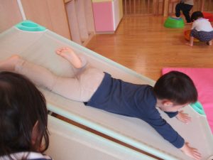 コット滑り台や平均台を組み合わせたサーキット遊びを通して、思い切り体を動かしました。