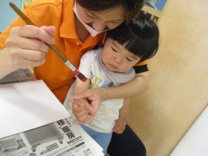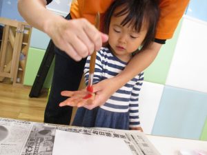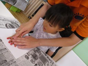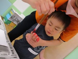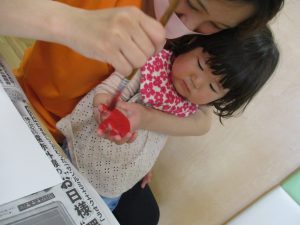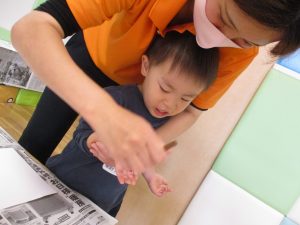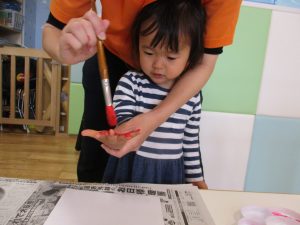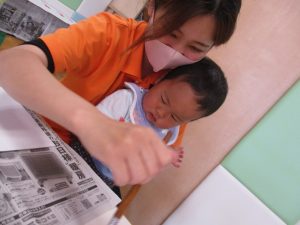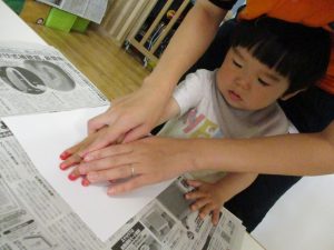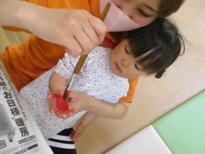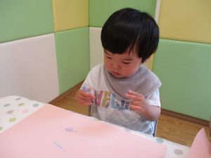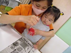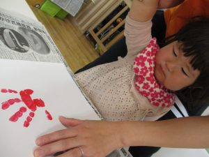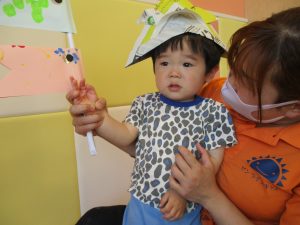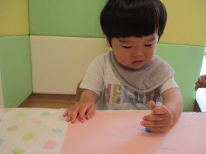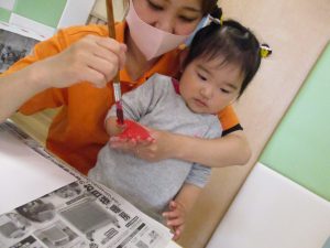 室内遊びの片隅で「母の日製作」も行いました!