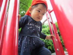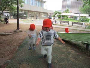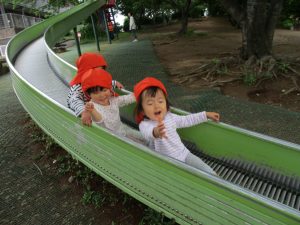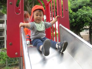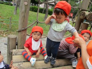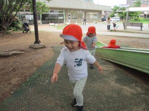 1歳児クラスのお友達は大好きな1号公園に遊びに行きました!