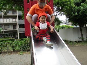 先生と一緒に滑るすべり台も格別に楽しいよね♪