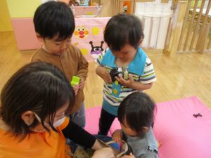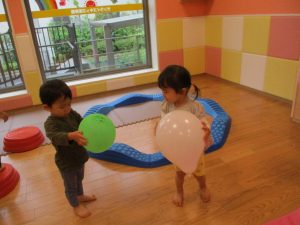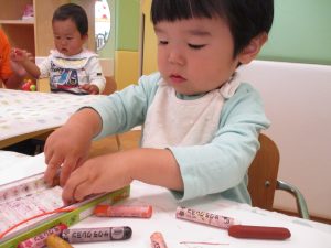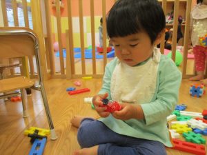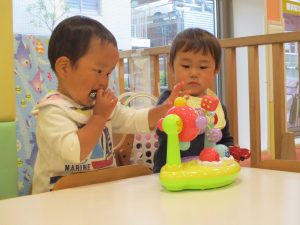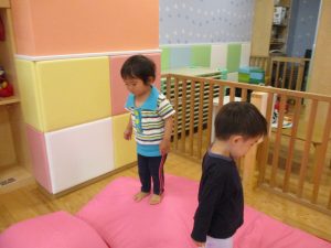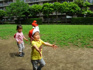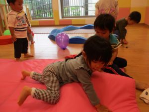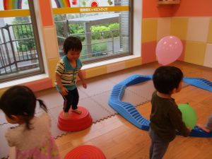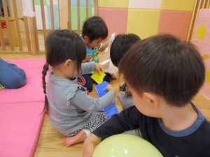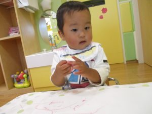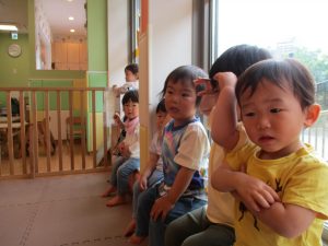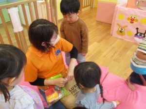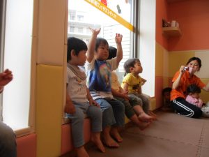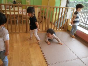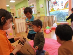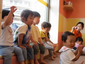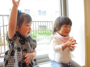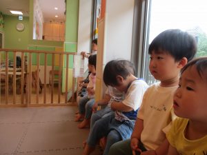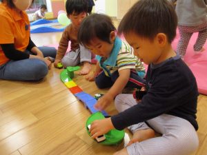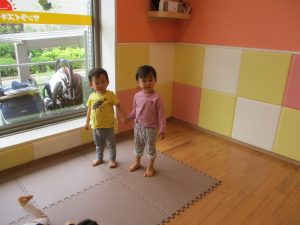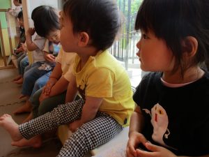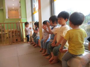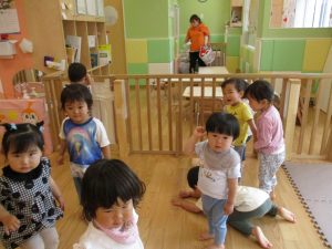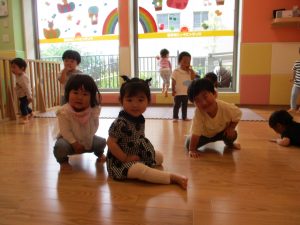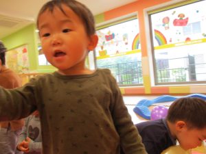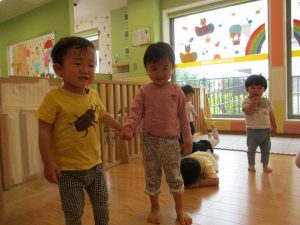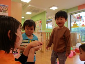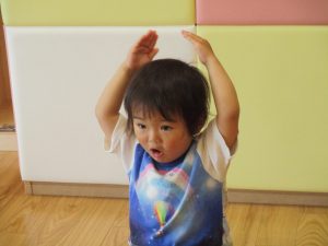 1歳児クラスのお友達もお兄さんお姉さんの真似をしながら、楽しく参加できるようになって参りました♪