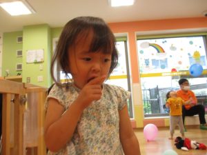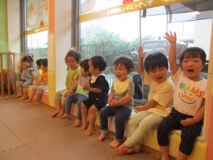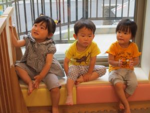 戸外遊びから帰ってくるとお子様達の額にはすでに汗がたっぷりと、、、