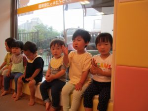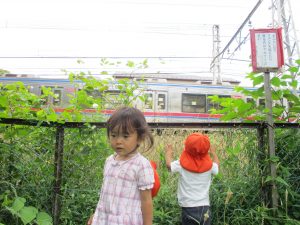 1歳児クラスのお友達は谷津コミュで過ごしたり、谷津駅周辺まで京成線を見に行きました!