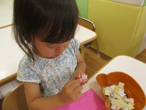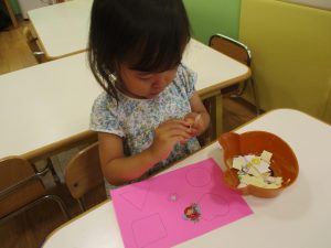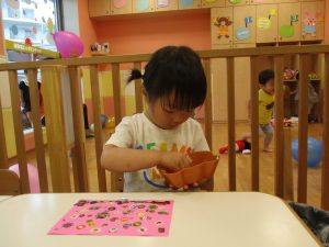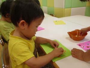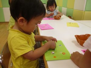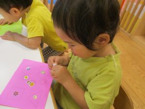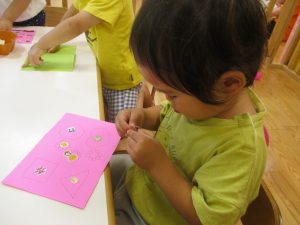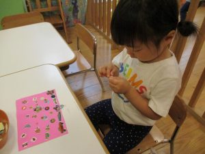 シール貼りも継続している遊びの為、日に日に指先が器用になり小さなシールも上手に剥がせるようになってきます♪