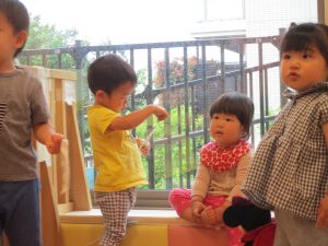 線路の向かい側には1歳児クラスのお友達がおりました。笑