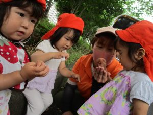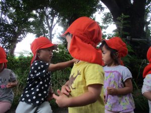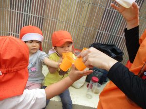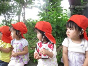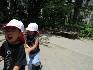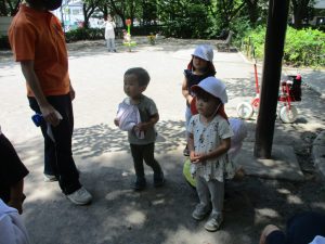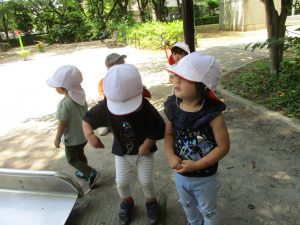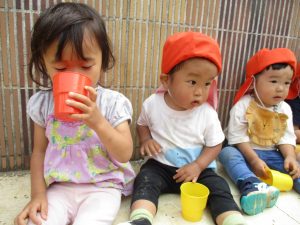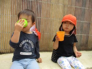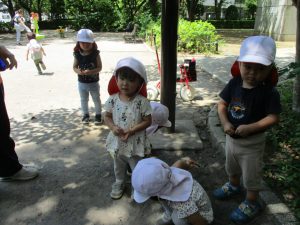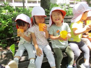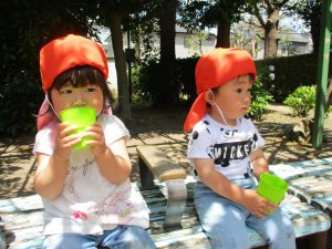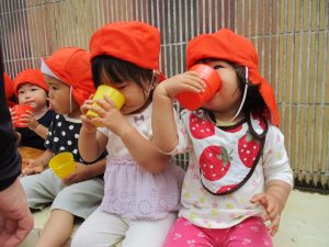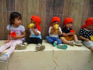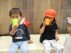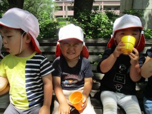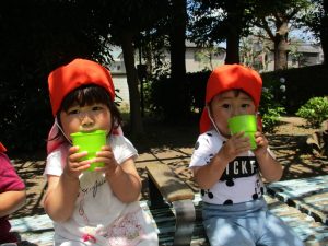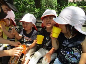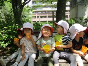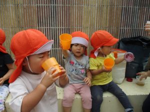 日陰も多く暑さに負けずに思い切り体を動かして遊んだり、皆で楽しく水分補給を行いました。