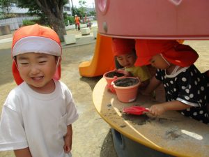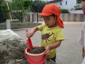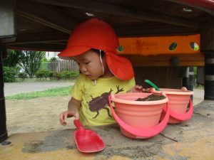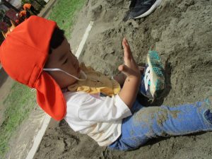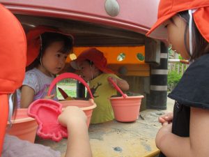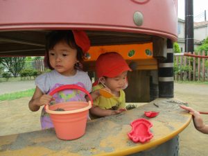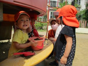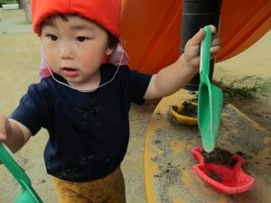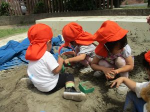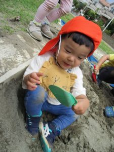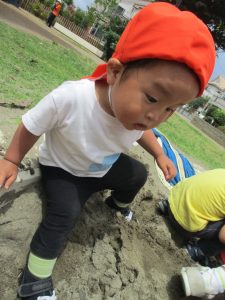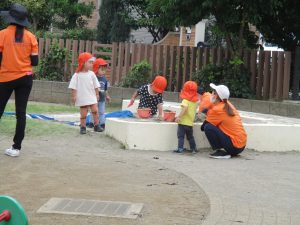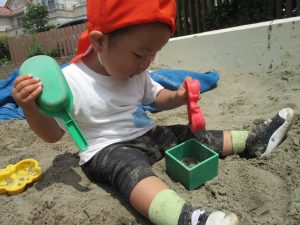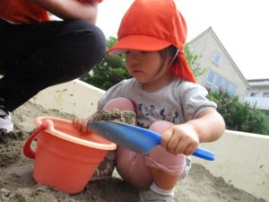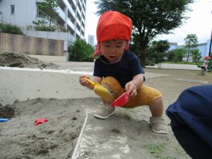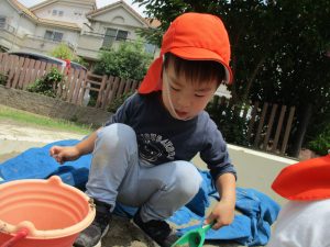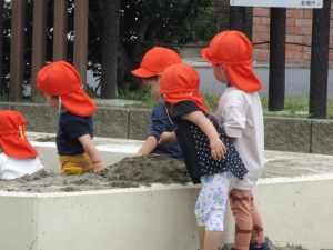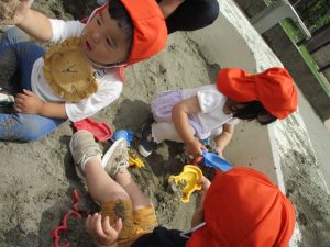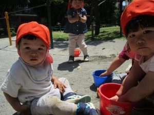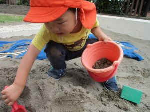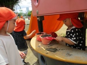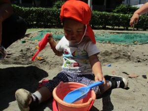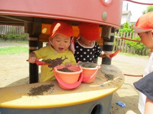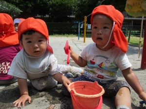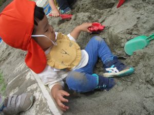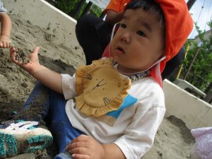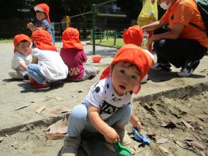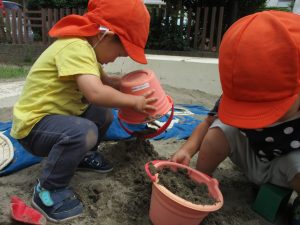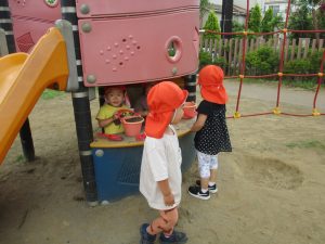 砂場でのままごと遊びを楽しんだり、麦茶をたくさん飲み皆でゆっくりと過ごしました!