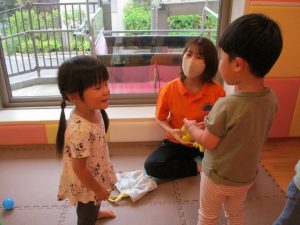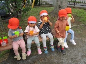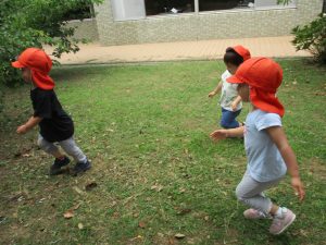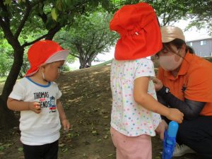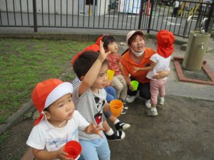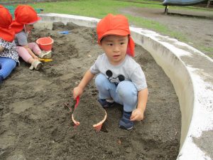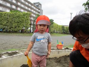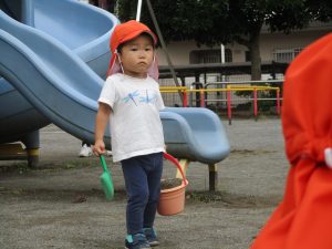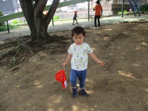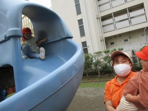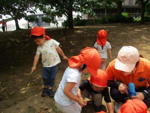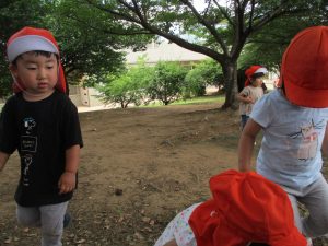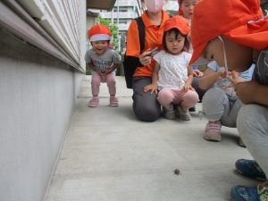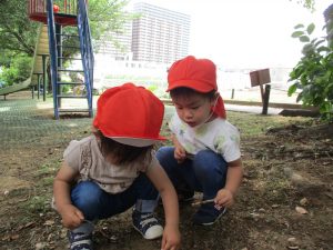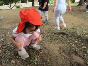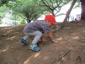 虫探しが大流行しているようで、葉っぱの下や遊具のそばを中心に夢中で探しております!