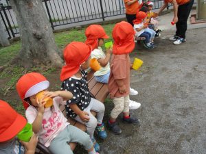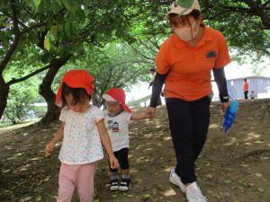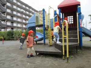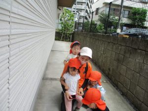 曇り空のお陰で涼しく過ごす事が叶い、全員で5丁目公園までおでかけ♪