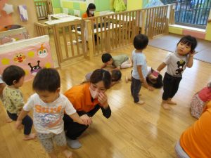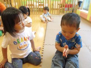 今月より3名のお子様が入園となり、さっそく谷津園にて楽しい時間を過ごしております♪