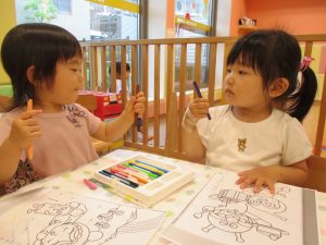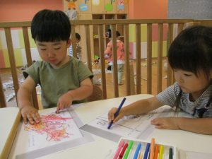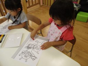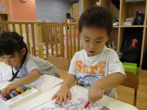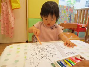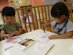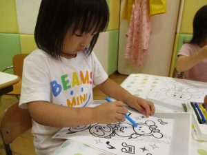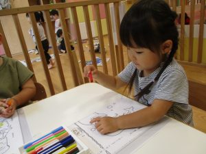 昨日に引き続き塗り絵も大人気の様で、各々が好きなキャラクターを選び楽しそうに行っておりました♪