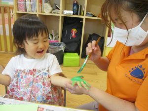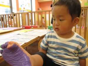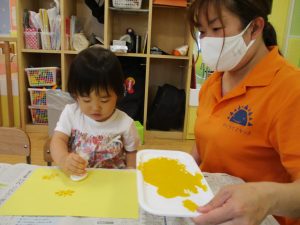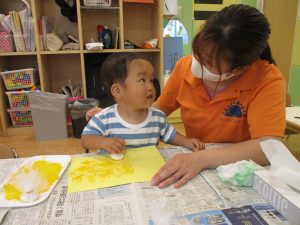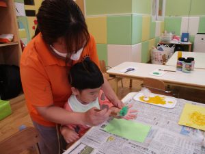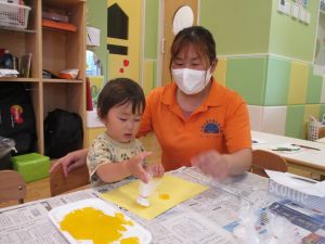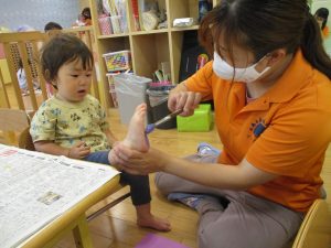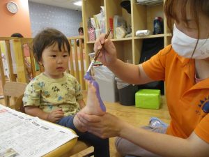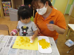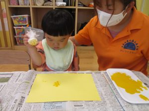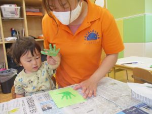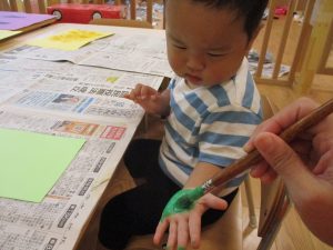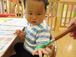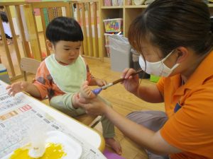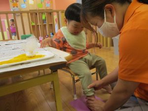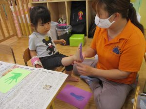 1歳児クラスのお友達は手形や足形を取らせて頂きました。
