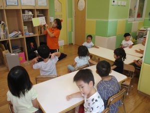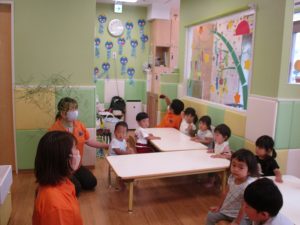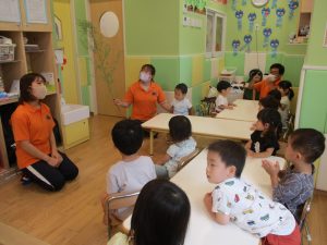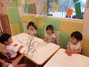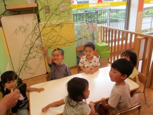 七夕にちなんだ絵本の読み聞かせや歌を皆で歌い、七夕の雰囲気を存分に味わいました。
