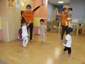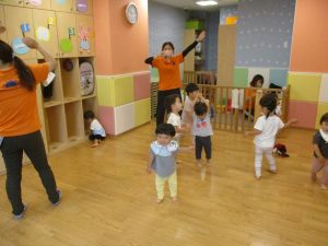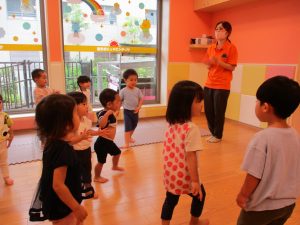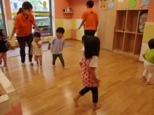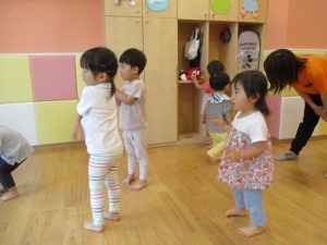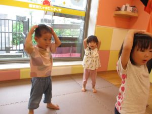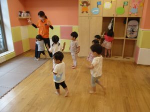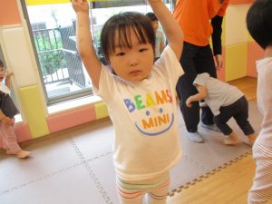 室内でもリズム体操をたくさん行い、思い切り体を動かして過ごし大満足の様子です♪