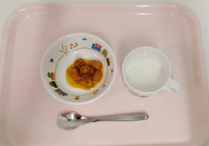 ※スプーンを使う子、手づかみの子、個々の成長にあった食べ方をしています。おいしく楽しく食べるということを繰り返すことで、給食が楽しみになってくれたら嬉しいです。