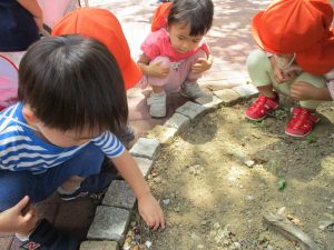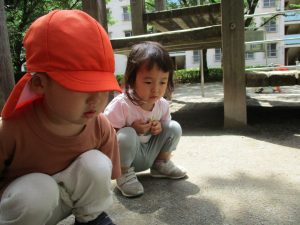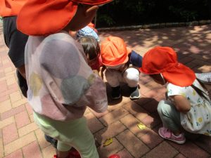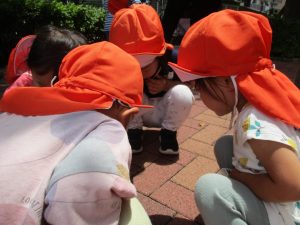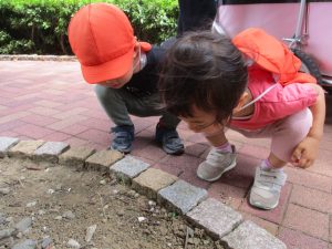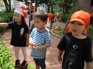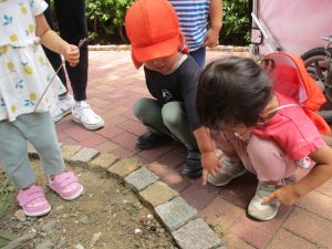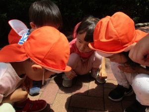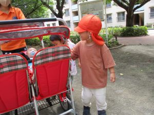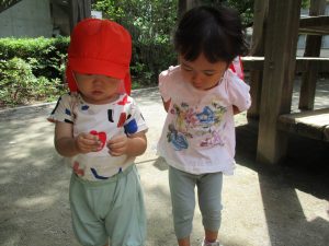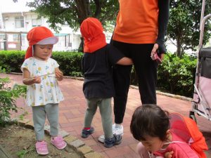 0歳児クラスのお友達も一緒に散歩に行きましたが、2歳児クラスのお友達が事あるごとに寄り添ってくれ、立派なお兄さんお姉さんな対応をしてくれた姿が何とも微笑ましかったです。