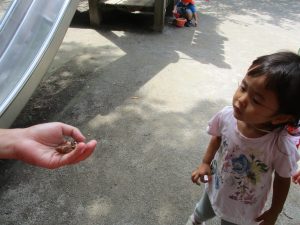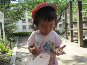 蝉の抜け殻が多くあり少し怖がりながらも、手のひらに乗せる事が出来ました!