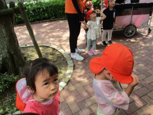 室内で絵本を読んでゆっくりと過ごした後は、昨日に引き続きさくら公園周辺までの戸外散歩を楽しみました♪